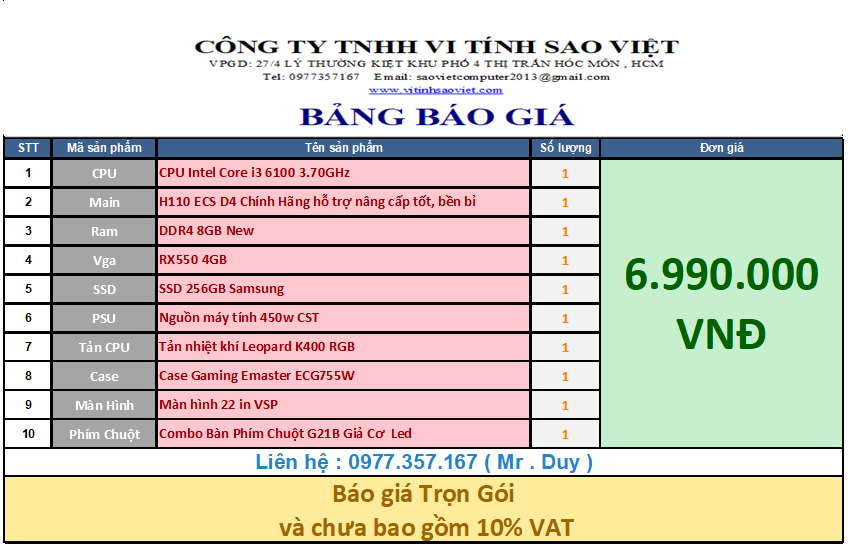 Vi Tính Sao Việt cung cấp PC Gaming giá rẻ chỉ 6.990.000 VNĐ kèm màn hình. Giao hàng và bảo hành tận nơi khu vực Hóc Môn. Liên hệ ngay để sở hữu dàn máy chất lượng với giá siêu ưu đãi!
